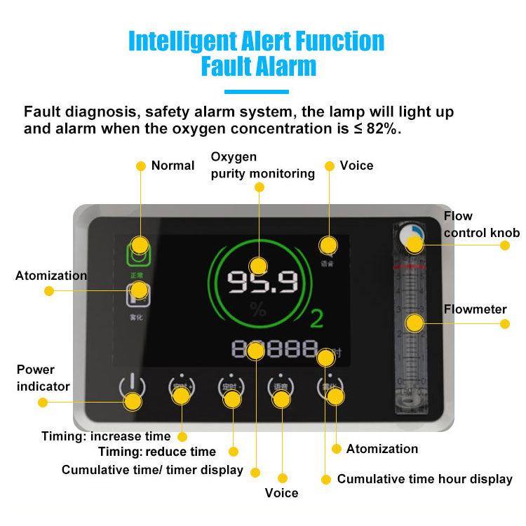 | ALARM | Power failure, Over-heat, Low O2 purity alarm |