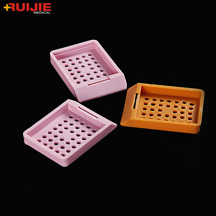 High-quality cassettes can safely handle tissue samples immersed in liquid solutions. The embedding cassette is ventilated, with strip, square or round holes, which can exchange and drain the liquid to the greatest extent. For larger label areas, the inlay box is compatible with the printing device. You can choose connected hinged lids and snap lids to lock items securely. The embedded cassette is available in a variety of colors for easy identification, and a deeper model or a larger model can be provided to accommodate any specimen.